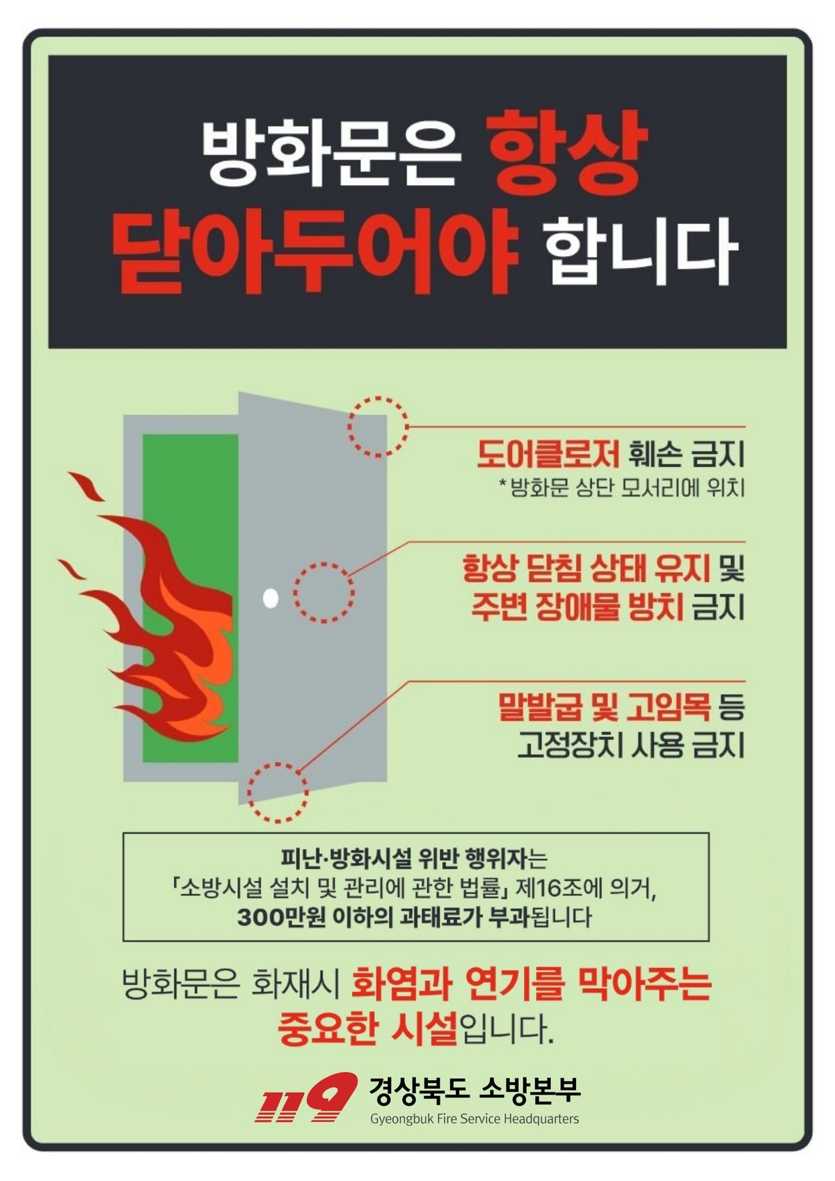 경산소방서, 겨울철 화재 확산 막기 위한 '방화문 닫기' 집중 추진