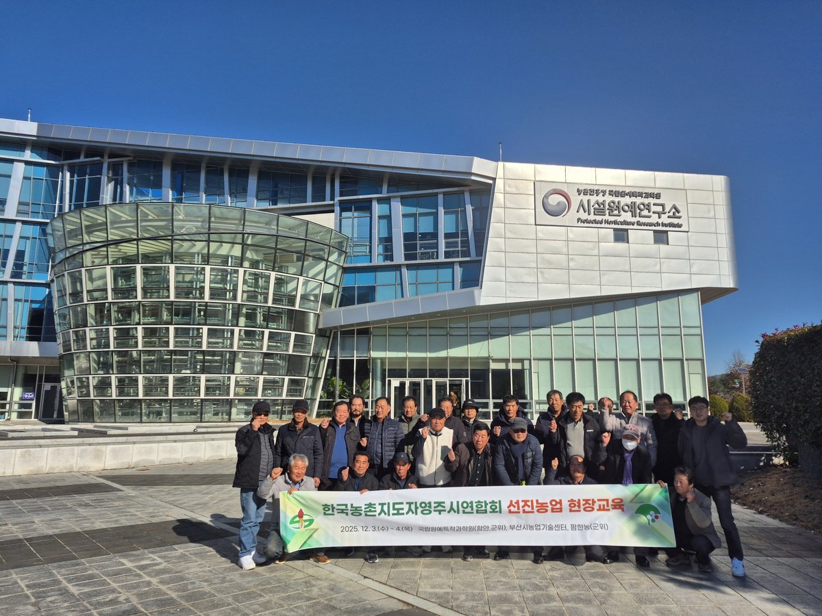 한국농촌지도자영주시연합회가 함안, 부산, 군위 등지에서 1박 2일간 선진 농업 현장 교육을 진행했다.이번 교육은 급변하는 농업 환경에 능동적으로 대처하고, 지역 농업 발전을 이끌기 위해 마련됐다. 농촌지도자연합회 임원과 읍면 회장, 총무 등 26명이 참여하여 열띤 분위기 속에서 진행됐다.교육 목표는 농촌지도자의 역량 강화, 기술 정보 교류 활성화, 그리고 농업 기술의 지역 확산 촉진이다. 특히 기후 변화에 대응하는 농업 기술, 스마트 농업, 신품종 개발 분야의 연구 시설을 방문하여 관계자들과 현안을 공유하고 대응 기술을 모색하는 데 집중했다.첫째 날에는 함안의 국립원예특작과학원 시설원예연구소를 방문, 온실 스마트팜 등 첨단 시설원예 기술 현황과 기후 변화 대응 연구 동향을 청취하고 시설을 견학했다. 이어 부산광역시 농업기술센터에서는 도심형 스마트팜 운영 사례와 수직농장 기술을 확인하며 첨단 농업의 현장 적용 가능성을 엿봤다.둘째 날에는 팜한농 구미공장을 방문하여 농자재 생산 공정을 살펴보고 농업 기술 지원 방향을 논의했다. 또한 국립원예특작과학원 사과연구소에서는 사과 신품종 개발과 기후 변화 대응 재배 기술 등을 벤치마킹하며 지역 적용 방안을 심도 있게 모색했다.이번 현장 교육은 영주시 농촌지도자회가 선진 농업 기술 역량을 강화하고, 기후 위기 시대에 대응하는 농업 기술 혁신 방향을 설정하는 중요한 계기가 됐다. 박재열 회장은 이번 교육이 미래 농업 변화를 확인하고 지역 농업에 적용할 기술을 배우는 소중한 시간이었다고 평가하며, 앞으로도 교육과 교류 활동을 지속적으로 추진하여 농촌지도자회가 지역 농업 발전의 중심 역할을 수행하도록 노력하겠다고 밝혔다.강희훈 농촌지도과장은 농촌지도자들이 변화하는 농업 환경에 전문적으로 대응할 수 있도록 지속적인 역량 강화 교육을 추진할 계획이라고 밝혔다. -