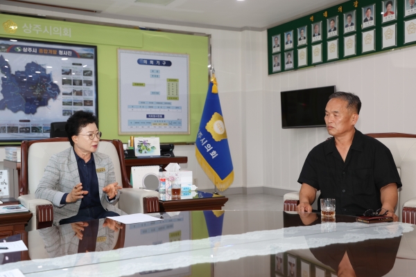 상주시의회는 22일 의장실에서 최근 육계분 처리 민원과 관련해 양계농가 대표들과 간담회를 가졌다. 최근 계분 반입 제한으로 인해 관내 육계 농가들이 어려움을 겪고 있는 상황과 관련해, 농가 피해를 최소...