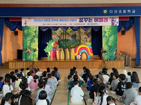 고령군은 관내 어린이들의 아토피피부염 예방 및 관리를 위해 9월 22일 고령초등학교 시청각실에서 1,2학년 95명, 다산초등학교 강당에서 1,2학년 71명을 대상으로 “꿈꾸는 애벌레”라는 주제로 아토피 피부염 예...