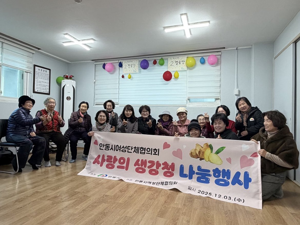 안동시 여성단체협의회가 겨울철 취약계층 어르신들을 위한 따뜻한 나눔을 실천했다. 회원들은 직접 정성껏 만든 생강청을 경로당과 독거노인 가구에 전달하며 온정을 더했다.이번 봉사활동은 황순녀 명예회장을 비롯한 여성단체협의회 회원 16명의 적극적인 참여로 이루어졌다. 회원들은 생강 손질부터 생강청 제조에 이르는 전 과정을 직접 진행하며 구슬땀을 흘렸다.특히, 김성순 안동예절다도연구회장의 재능기부로 더욱 의미를 더했다. 정성껏 만들어진 150병의 생강청은 지역 내 25개소 경로당과 취약계층 어르신들에게 전달되어 따뜻한 겨울을 보낼 수 있도록 지원했다.조희옥 안동시여성단체협의회장은 회원들의 따뜻한 마음이 담긴 생강청이 어르신들에게 작은 위로가 되기를 바란다고 전했다. 또한, 앞으로도 지역사회에 도움이 되는 나눔 활동을 지속적으로 펼쳐나갈 것을 약속하며 시민과 함께하는 여성단체가 되겠다고 밝혔다.권기창 안동시장은 추운 날씨에도 이웃사랑을 실천한 여성단체 회원들에게 감사의 인사를 전했다. 더불어 이러한 나눔 문화가 확산될 수 있도록 지속적인 지원을 아끼지 않겠다고 강조했다.
