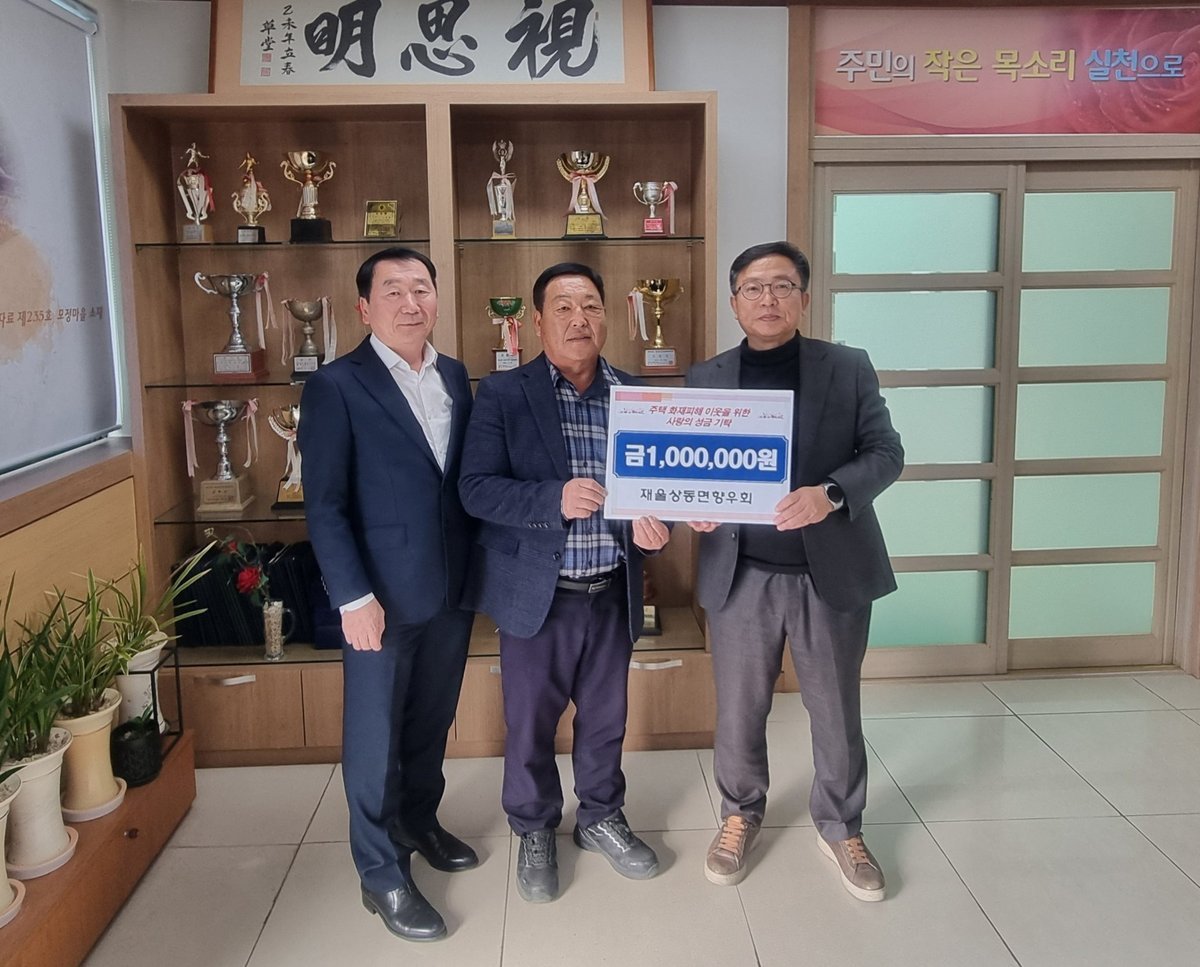 재울 상동면향우회가 최근 화재로 삶의 터전을 잃은 상동면 이웃을 위해 100만원의 성금을 기탁하며 따뜻한 마음을 전했다.이번 성금은 최근 상동면의 한 장애인 가구에서 발생한 화재 소식을 접한 향우회원들이 ...
