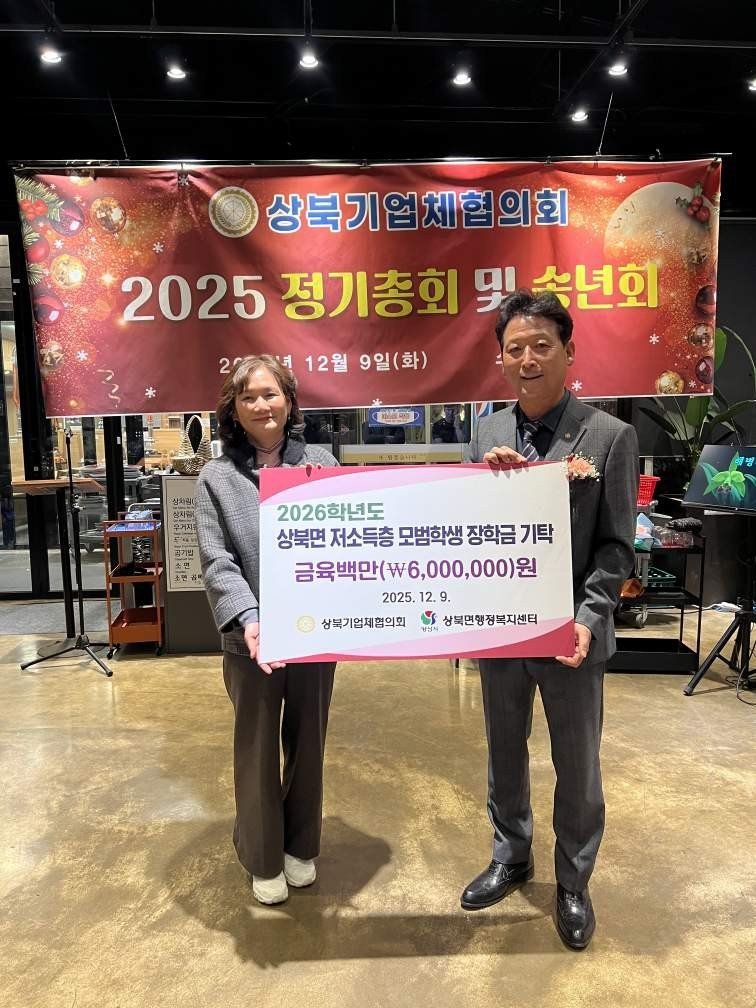 양산시 상북면에 위치한 기업체들의 모임인 상북기업체협의회가 지역 학생들을 위해 700만원의 장학금을 쾌척했다.지난 9일, 협의회는 정기총회 및 송년 행사에서 저소득 계층 학생들을 위한 장학금을 전달하며 ...