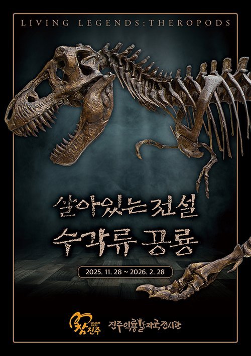 진주익룡발자국전시관에서 백악기 최강 포식자로 알려진 티라노사우루스를 만나볼 수 있는 특별한 기획전이 시작됐다. '살아있는 전설, 수각류 공룡'이라는 주제로 열리는 이번 전시에서는 티라노사우...
