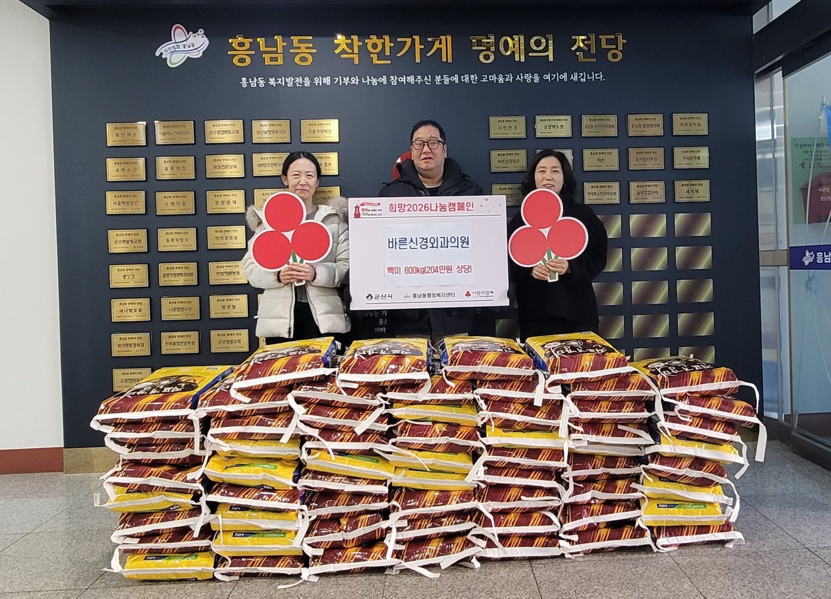 흥남동에 위치한 바른신경외과의원이 지역 내 어려운 이웃들을 위해 백미 600kg을 기탁하며 따뜻한 나눔을 실천했다.바른신경외과의 이번 기탁은 단순한 물품 전달을 넘어, 지역사회와의 상생을 위한 지속적인 노력의 일환으로 평가받고 있다. 평소 지역 어르신들의 건강을 책임지는 것은 물론, 꾸준한 나눔 활동을 통해 지역사회에 귀감이 되고 있다.바른신경외과는 작년 12월에도 백미 70포를 기탁하여 어려운 이웃들의 따뜻한 겨울나기를 지원한 바 있다. 착한가게 가입을 통해 지역사회에 꾸준히 공헌하고 있다.나기원 바른신경외과 원장은 "지역 주민들의 사랑에 보답하고자 작은 정성을 준비했다"며 "앞으로도 이웃과 함께하는 병원이 되겠다"고 밝혔다.이연숙 흥남동장은 "매년 따뜻한 나눔을 실천해 주시는 바른신경외과에 깊이 감사드린다"며 "소중한 성품은 도움이 필요한 가정에 신속하고 공정하게 전달하겠다"고 말했다.흥남동 행정복지센터는 바른신경외과의 따뜻한 나눔에 힘입어, 앞으로도 지역 기관 및 단체와 협력하여 취약계층 지원을 위한 다양한 복지 사업을 꾸준히 추진할 계획이다. -