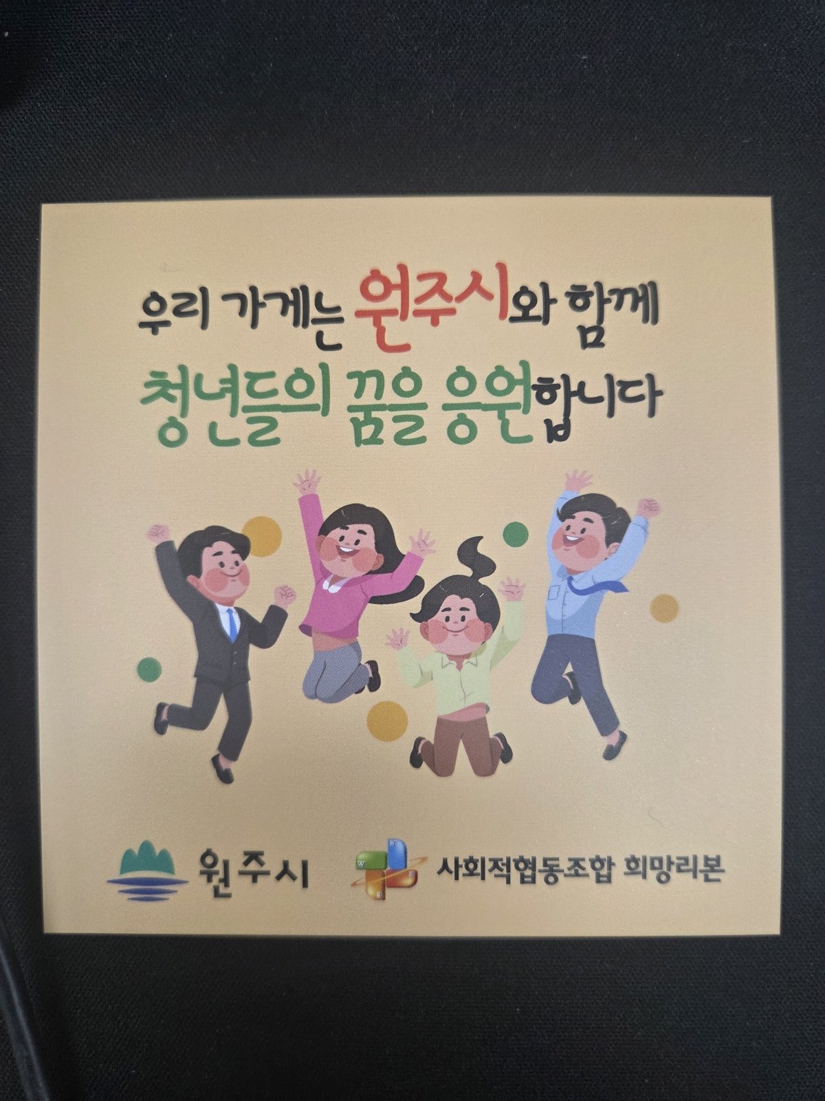 원주시와 사회적협동조합 희망리본 원주센터는 지난 4일부터 관내 자영업자들과 함께 청년들의 꿈과 도전을 응원하는 프로젝트를 시작했다.이번 프로젝트는 청년들이 일상에서 지역사회의 지지와 응원을 자연스럽게 느낄 수 있도록 기획됐다.은둔·고립 청년을 응원하고자 하는 사업장에 희망의 메시지를 담은 홍보물을 비치하거나 포장 또는 배달 시 함께 전달하는 방식으로 진행된다.관내 음식점과 편의점 등 30여 개 사업장에서 동참하고 있으며 참여 사업체가 계속 증가하고 있다.10월 말 기준 참여업체는 △ 가장맛있는족발 원주단계점, 단계빵집, 달리는커피 단계점, 만나 칼국수, 명인만두 단계점, 문팰리스&뜨화덕 CAFÉ, 본 죽&비빔밥 원주단계점, 세븐일레븐 원주단계센터점, 이진희도자기, 정원도토리임자탕, 조판 본점, 킹콩마라탕, 피자헛 원주봉화점, 홍콩반점0410 원주단계점, CU 단계우리점, 33떡볶이 단계점 △ 옛 고려정 △ 김밥천국 무실점, 도깨비반찬3호점, 반찬에 반하다, 섭스시 무실점, 아담만주 원주무실점, 엄니반찬, 오닭꼬치 원주무실, 우지커피 원주무실점, 자미당 무실점, 피자스쿨 원주무실점, CU 원주무실대로점 △ 조판 혁신직영점, 빵이당 원주반곡점 등이다.자세한 사항은 사회적협동조합 희망리본 원주센터로 문의하면 된다.엄병국 원주시 기업지원일자리과장은 “지역 청년들을 응원하는 데 뜻을 함께해 주신 자영업자분들께 감사드린다”며 “앞으로도 청년이 건강하게 성장하고 지역사회가 더욱 활기를 띨 수 있도록 원주시가 적극 지원하겠다”고 말했다. -