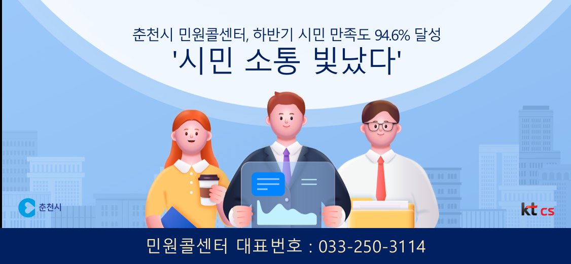 춘천시 민원콜센터가 시민 만족도 조사에서 평균 94.6%의 높은 점수를 받으며 시민들의 긍정적인 반응을 얻고 있다.이는 춘천시가 시민 중심의 고품질 민원 서비스를 제공하기 위해 노력한 결과로 풀이된다.이번 만족도 조사는 지난달 한 달간 민원콜센터 이용에 동의한 시민 500명을 대상으로 진행됐다. 조사 결과, 친절도 98.4%, 이해도 98.8% 등 항목별로 높은 평가를 받았다.춘천시 민원콜센터는 지난해 8월 개소 이후 KTcs가 위탁 운영을 맡아, 전문 상담사들이 일반 민원, 교통, 관광, 세정, 복지, 생활 등 다양한 분야에 걸쳐 종합적인 상담 서비스를 제공하고 있다.특히 평일 오전 8시 30분부터 오후 6시 30분까지 운영되어 시민들의 이용 편의성을 높였다. 야간, 주말, 공휴일에는 시청 당직실로 자동 연결되어 민원 공백을 최소화하고 있다.춘천시는 이번 조사 결과를 바탕으로 앞으로도 위탁사와 협력하여 더욱 친절하고 질 높은 서비스를 제공하기 위해 노력할 계획이다. 시민들의 삶에 더욱 밀착된 민원 창구로서의 역할을 강화해 나갈 것으로 전망된다. -