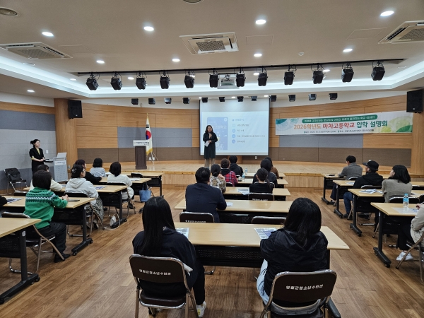 교육발전특구 시범지역 사업으로써 마차고등학교는 지난 21일 영월청소년수련관에서 중학생 학부모를 대상으로 2026학년도 교육과정 설명회를 개최하며 지역의 보건·간호 인력 양성을 위한 선이수 학점제의 순조로운 추진을 이어가고 있다. 이번 설명회는 학부모, 교사, 군 관계자, 세경대에서 참여했으며 “미래를 디자인하는 로드맵&아이의 하루가 달라지는 학교이 야기”라는 주제로 보건·간호분야 선이수 특화교육 과정뿐만 아니라 학교 전반적인 교과과정을 소개했다. 마차고등학교는 현재 보건·간호 분야 교양수업을 시작했으며 내년에는 3학년을 대상으로 전공과목을 선이수할 수 있도록 교수학습 자료를 개발해 운영할 계획이다. -