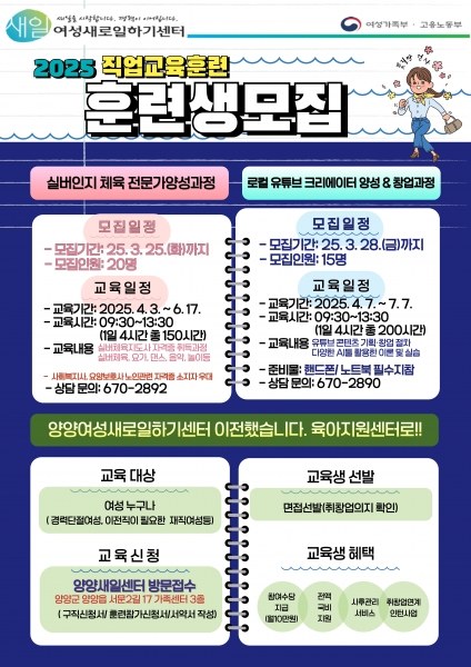 양양여성새로일하기센터, 직업교육훈련생 모집