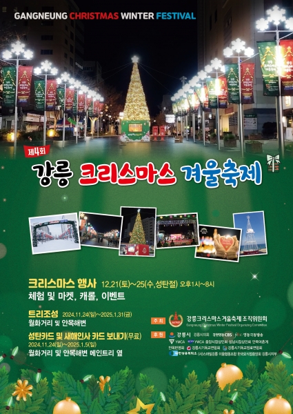 거리마다 불빛이 반짝이며 설렘을 자극할 ‘강릉 크리스마스 겨울축제’ 가 오는 12월 21일부터 25일까지 월화거리에서 펼쳐진다. 올해 4회째를 맞이하는 강릉 크리스마스 겨울축제는 ‘해피 강릉, 크리스마스 강...
