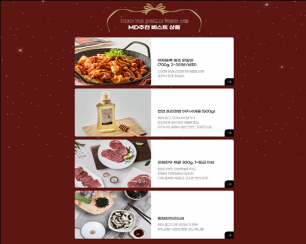 강원특별자치도는 “12월 16일부터 12월 22일까지 대형 유통플랫폼인 오아시스 마켓과 처음으로 온라인 강원 기획전을 개최한다”고 밝혔다. 농림축산식품부와 한국농수산식품유통공사가 농식품 법인을 대상으로 ...