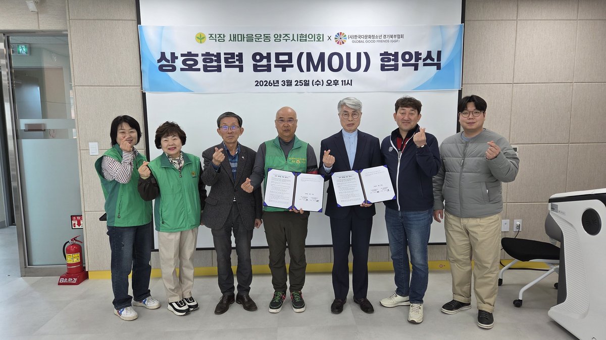 협약식에는 직장 공장새마을운동 양주시협의회 오수영 회장, 오외순 회원, 황점연 감사를 비롯해 한국다문화청소년 경기북부협회 유용덕 회장, 한재훈 사무국장, 전영광 사무차장이 참석했다. 덕정 마을관리 사회적협동조합 최호성 이사장도 함께 자리하여 기관 간의 결속을 다졌다.