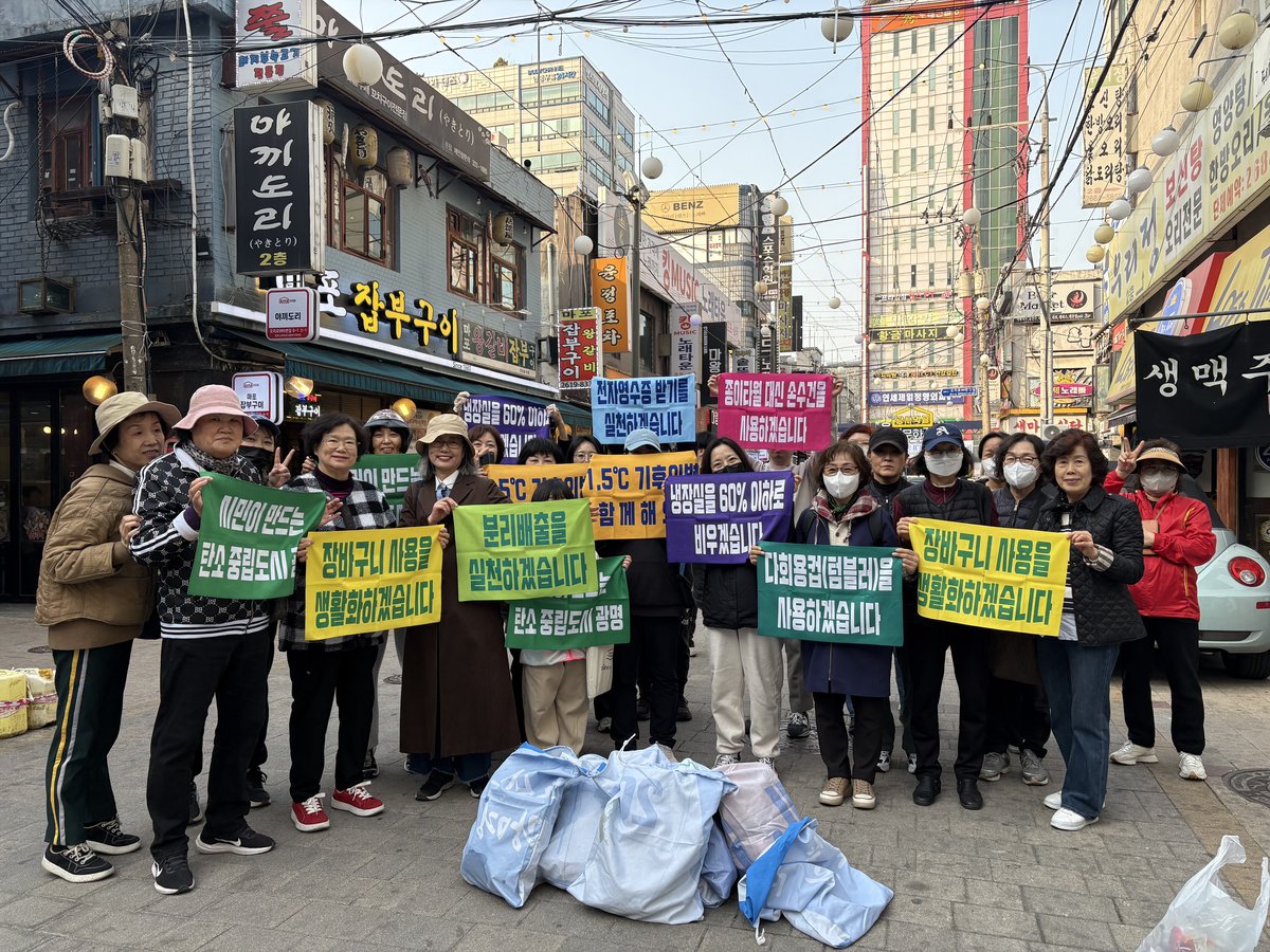 특히 눈에 띄는 점은, 이들이 버려지는 폐현수막을 재활용한 마대 자루를 사용했다는 것이다. 자원 순환의 의미를 더하며 행사의 의미를 더욱 깊게 만들었다.
