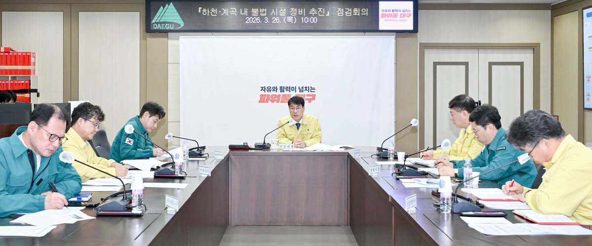 3월 26일, 대구시는 구·군 합동으로 '하천 계곡 내 불법 점용시설 정비 추진 점검회의'를 개최하고, 불법 시설물로 인한 재난 예방에 총력을 기울이기로 했다.