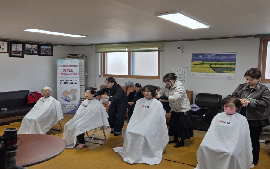 지난 25일, 식사1통 경로당에서는 어르신들의 웃음꽃이 활짝 피었다. 평소 미용 서비스를 받기 어려웠던 어르신들을 위해 아이디헤어 위시티점의 헤어 디자이너들이 직접 찾아가 재능을 기부했기 때문이다.
