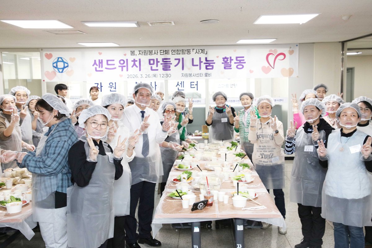[PEDIEN] 안양시자원봉사센터가 26일, 29개 자원봉사단체 44명과 함께 특별한 나눔 활동을 펼쳤다. '사계'라는 이름으로 진행된 이번 행사는 봄을 맞아 샌드위치를 직접 만들어 지역 내 장애인 시설에 전달하는 봉사였다.