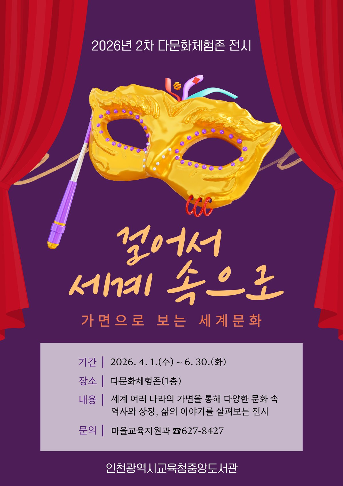 [PEDIEN] 인천광역시교육청중앙도서관이 특별한 전시를 준비했다. 4월부터 6월까지 도서관 다문화체험존에서 '가면으로 보는 세계문화' 전시가 열린다.