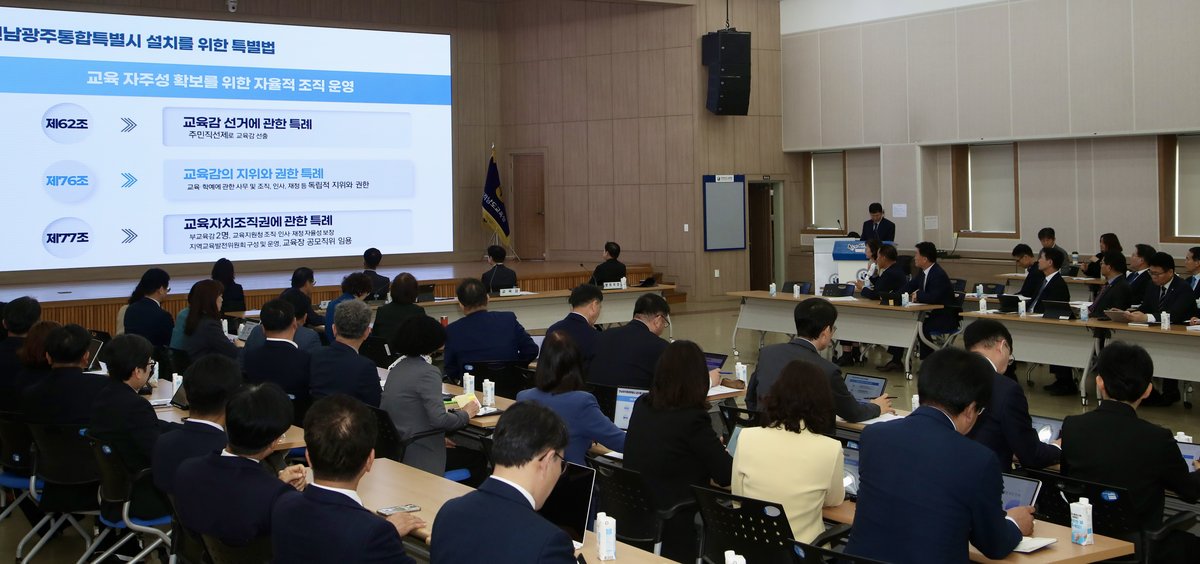 [PEDIEN] 전라남도교육청이 '전남 광주 교육행정통합의 비전과 과제'를 주제로 정책협의회를 개최했다.