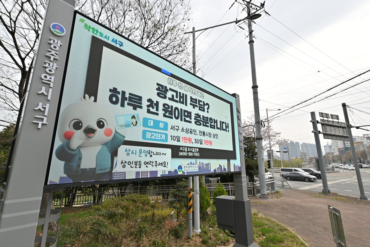 서구는 4월부터 관내 전자게시대 2곳을 활용해 '천원 광고'를 본격적으로 운영한다. 지원 대상은 서구의 소상공인과 전통시장 상인이다. 광고 요금은 하루에 1000원으로, 10일 기준 1만원, 한 달 기준 3만원에 이용할 수 있다.