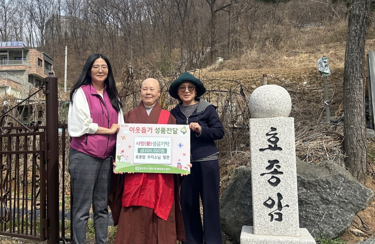 이호성 생연1동장은 “매년 잊지 않고 소중한 성금을 기탁해 주시는 효종암에 깊이 감사드린다”며, “효종암의 따뜻한 마음이 어려운 이웃들에게 잘 전달되어 지역사회에 나눔의 온기가 더욱 확산되기를 기대한다”고 말했다.