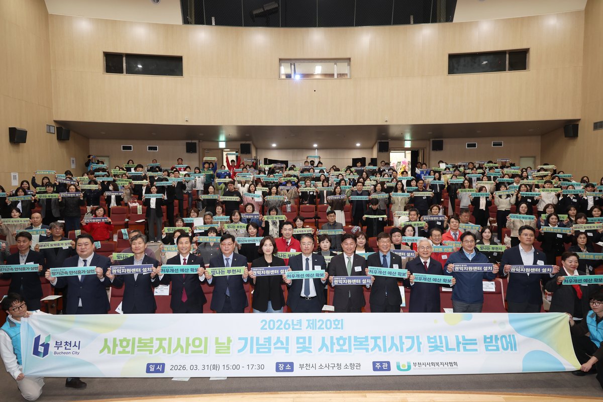 [PEDIEN] 부천시가 지난 31일 소사구청 소향관에서 '제20회 사회복지사의 날 기념식'을 개최했다. 이날 행사에는 사회복지사 300여 명이 참석하여 자리를 빛냈다.