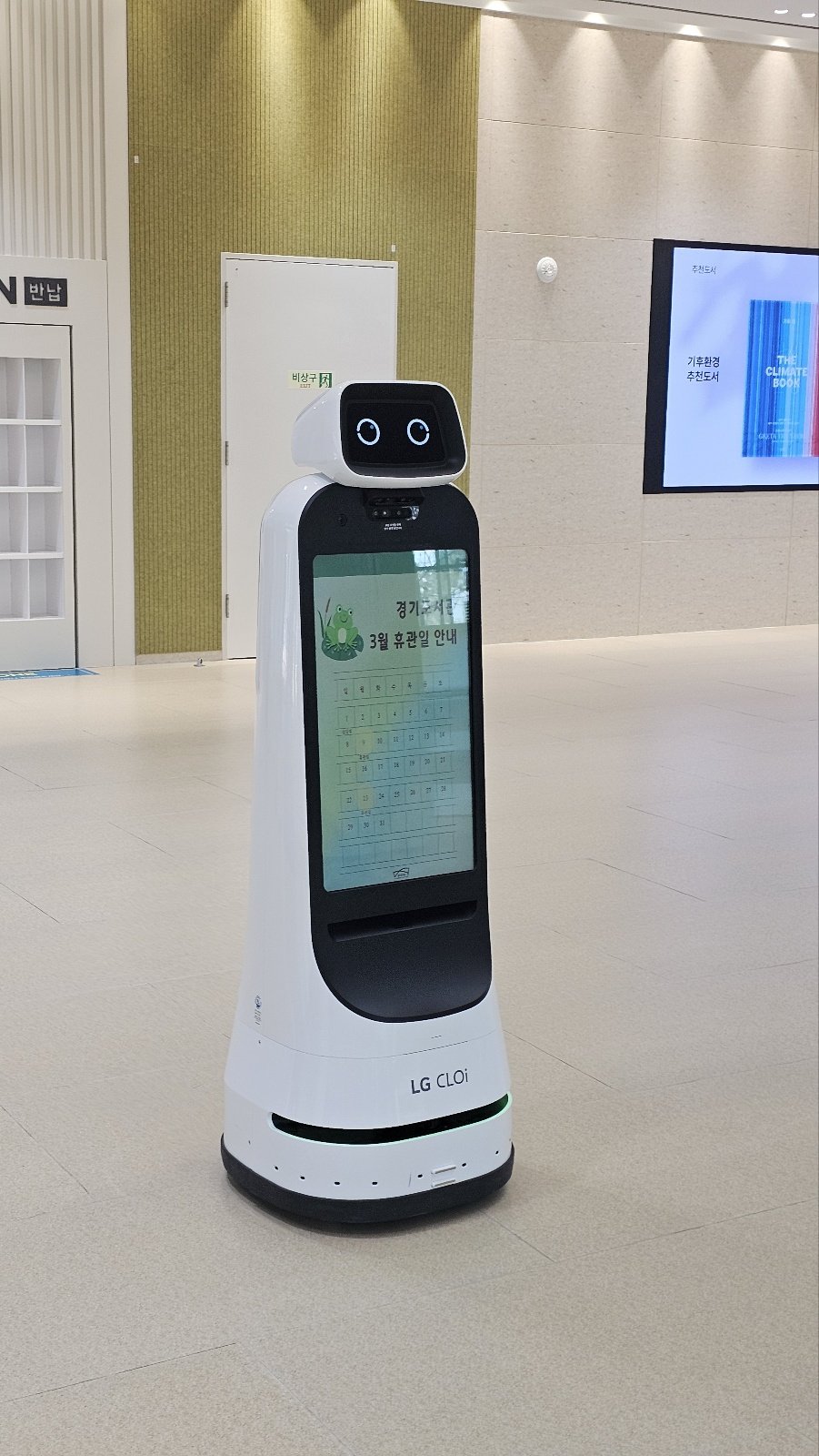 1층 웰컴라운지에서는 대형 화면을 갖춘 안내 로봇‘클로이’ 가 참여자를 맞이한다.안내 로봇은 몸체에 장착된 화면으로 체험전의 주요 정보를 제공하고스탬프 투어 시작 지점을 알리는 가이드 역할을 담당한다.