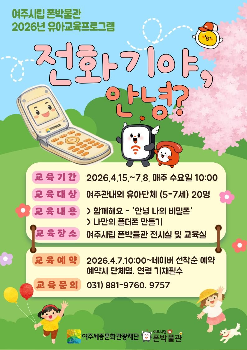[PEDIEN] 여주시립 폰박물관이 유아 대상 체험 프로그램 '전화기야, 안녕?'을 4월 15일부터 7월 8일까지 매주 수요일에 운영한다.