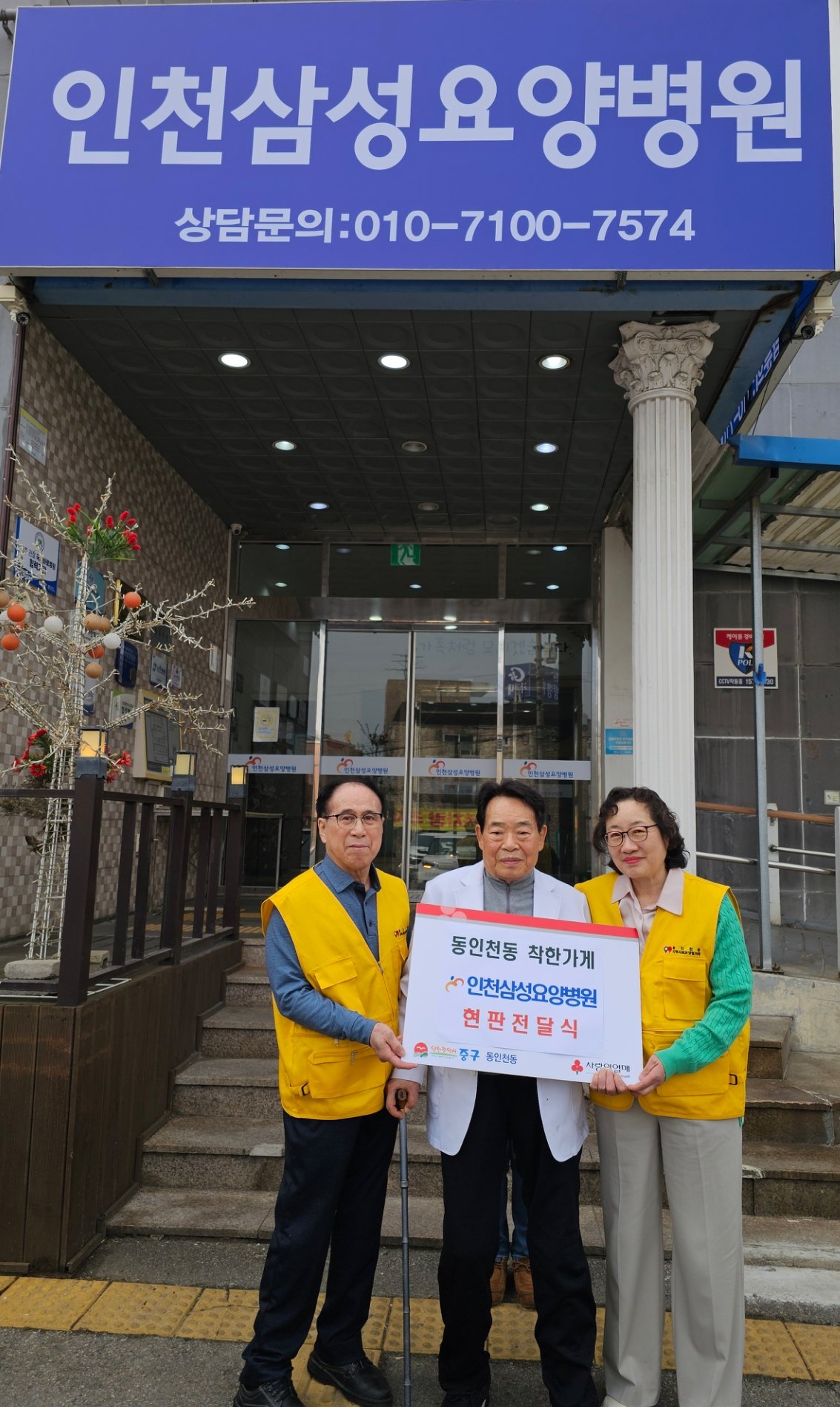 동인천동 지역사회보장협의체는 지난 3일, 인천삼성요양병원을 방문해 착한가게 현판을 전달하고 감사의 마음을 전했다.
