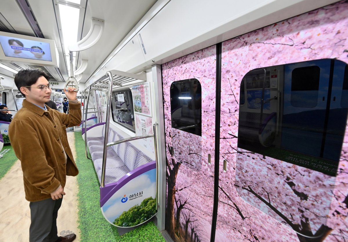 [PEDIEN] 하남시가 벚꽃 개화기를 맞아 특별한 프로젝트를 시작했다. 지하철 5호선 전동차 내부를 하남의 아름다운 명소로 꾸민 '하남 풍경열차'를 운행하며 시민들의 눈길을 사로잡고 있다.