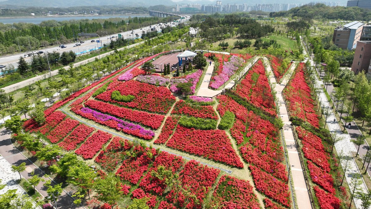 약 3,000평 부지에 촘촘하게 식재된 10만 본의 영산홍이 만개하면 마치 거대한 레드카펫을 깔아놓은 듯한 장관을 연출한다. 붉은 꽃물결 너머로 푸른 한강이 유유히 흐르는 대비는 눈을 뗄 수 없을 만큼 환상적이다. 꽃길 사이로 조성된 산책로를 걷다 보면 “서 있기만 해도 화보가 된다”는 말에 절로 고개가 끄덕여진다.