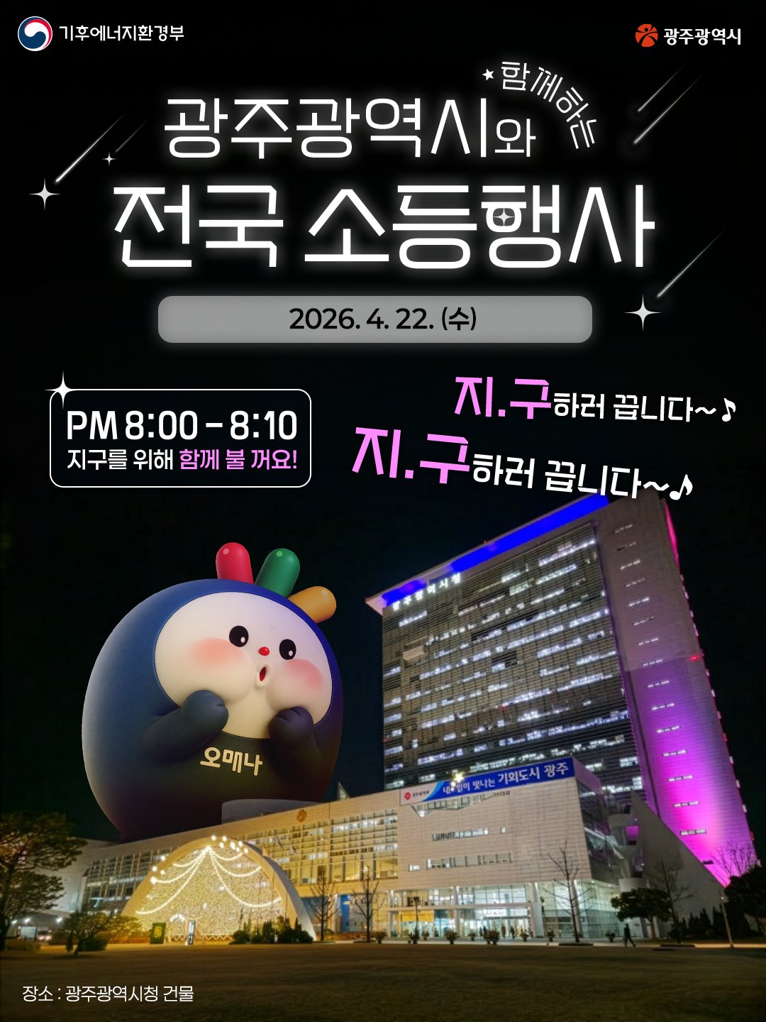 [PEDIEN] 광주시는 4월 22일 ‘지구의 날’을 맞아 밤 8시부터 10분간 소등 행사를 진행한다.