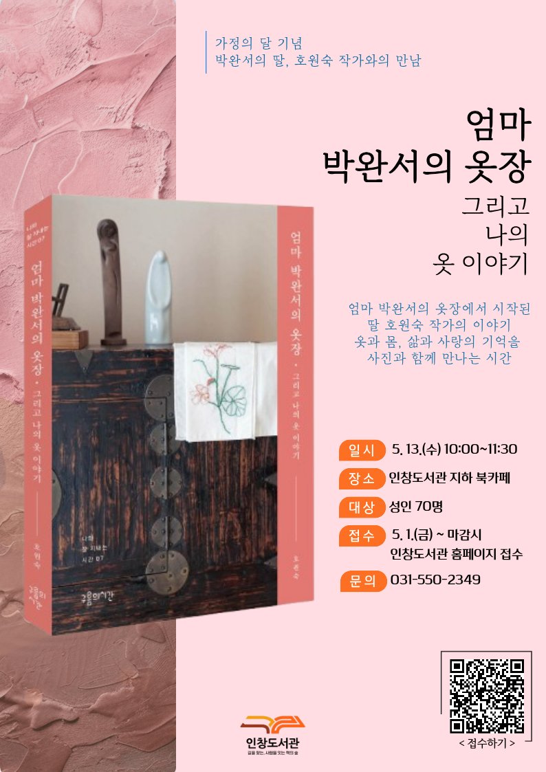 이번 강연은 ‘엄마 박완서의 옷장, 그리고 나의 이야기’라는 주제로 진행된다. 시민들에게 문학과 삶을 연결하는 소중한 경험을 선사할 예정이다.