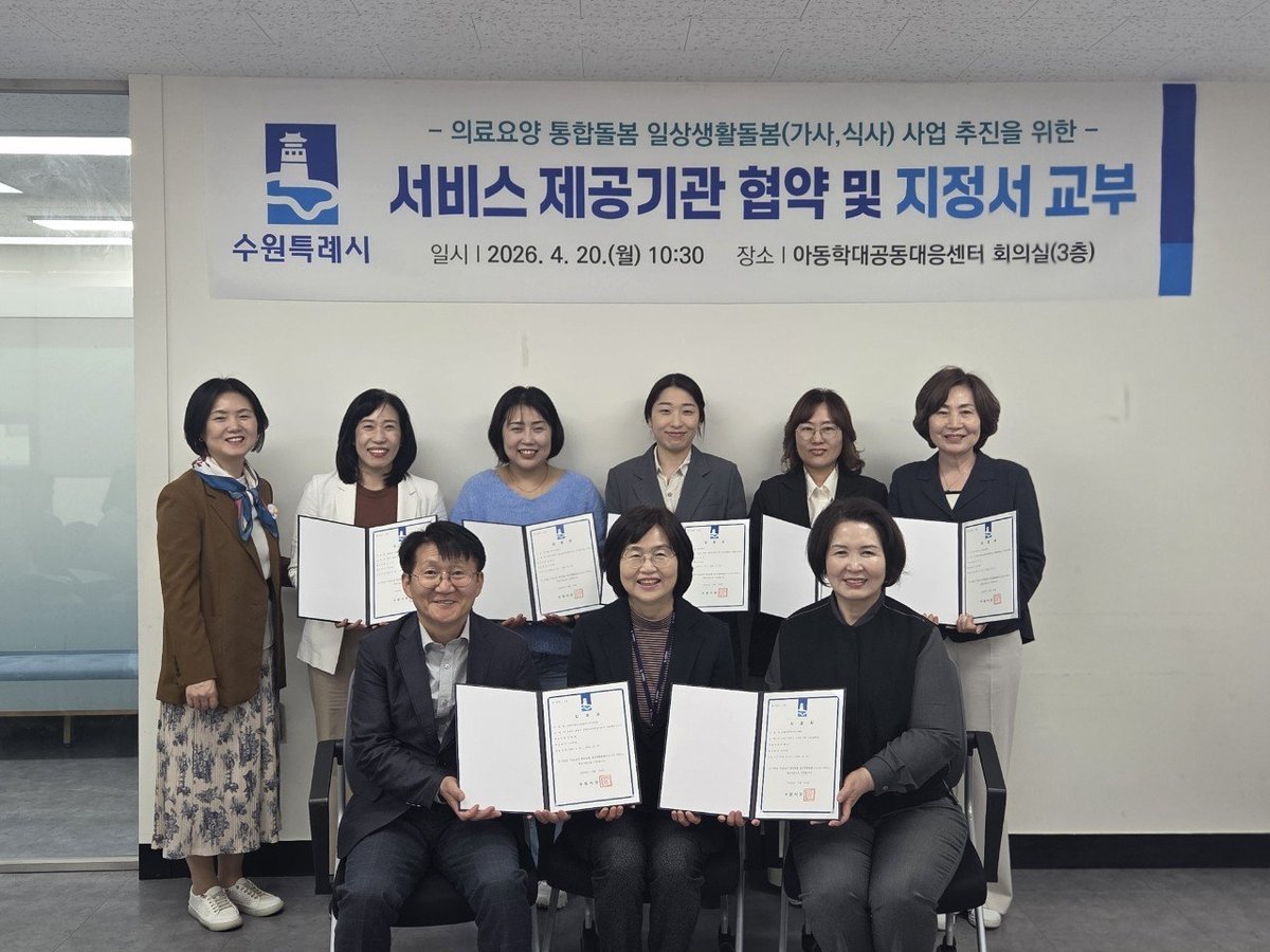 의료·요양 통합돌봄 서비스 이용을 원하는 시민은 주소지 동 행정복지센터에서 상담 및 신청이 가능하다. 수원시는 이번 협약을 통해 시민들이 체감할 수 있는 촘촘한 사회안전망을 구축하고, 살기 좋은 도시를 만들어나갈 계획이다.