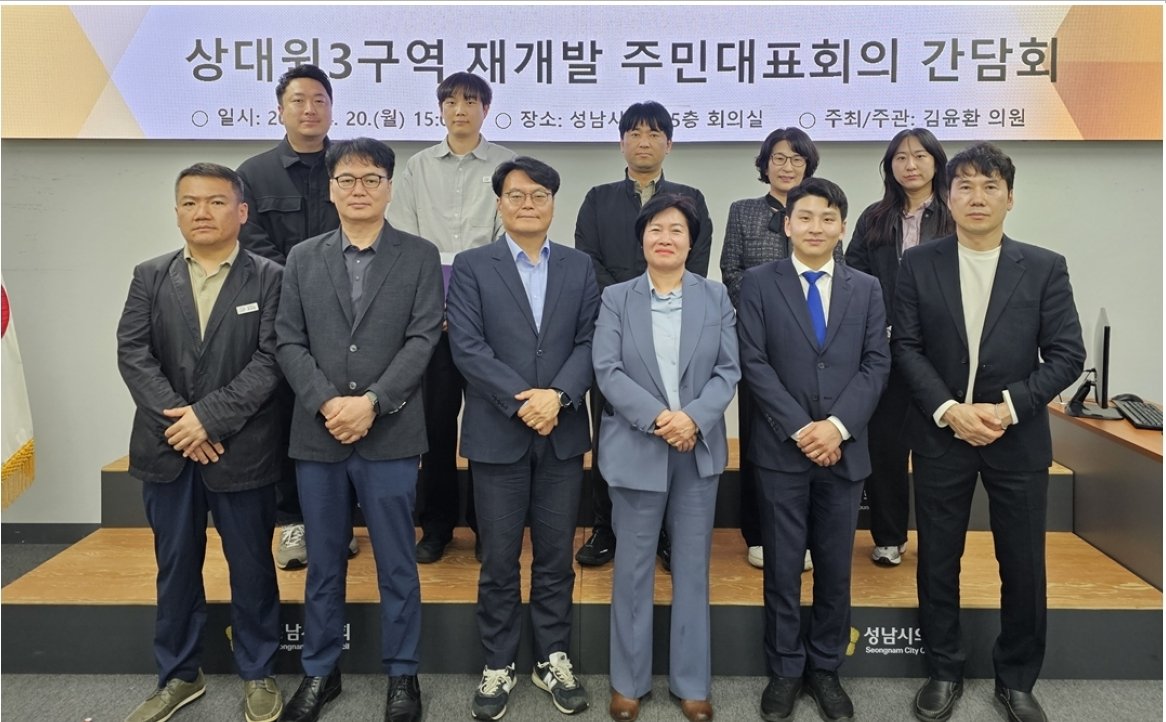 [PEDIEN] 성남시의회 김윤환 의원이 상대원3구역 재개발 사업의 신속한 추진과 주민 부담 경감을 위해 발 벗고 나섰다. 20일, 김 의원은 관계기관 간담회를 개최하여 해결 방안을 모색했다.