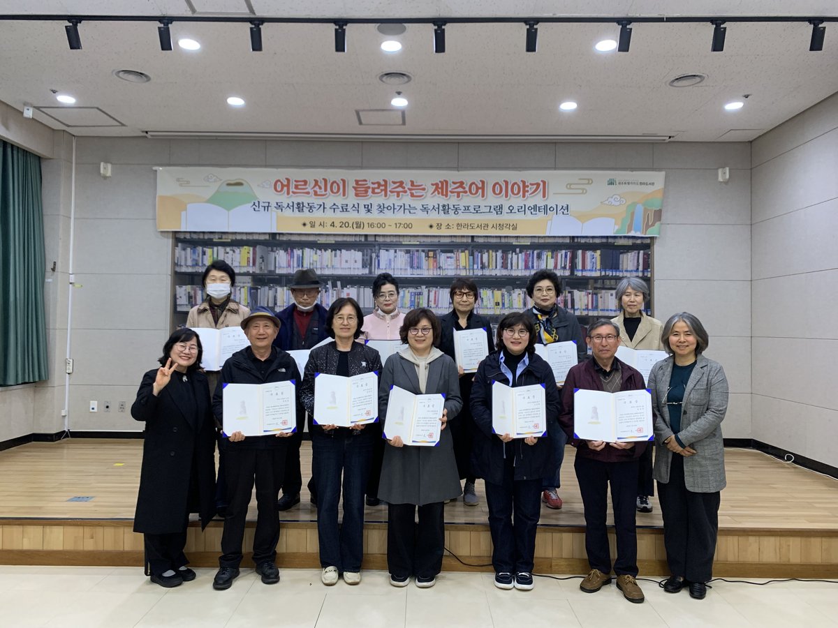 [PEDIEN] 제주 어르신들이 직접 제주어 동화구연가로 나선다. 한라도서관은 20일 도서관 강의실에서 올해 ‘어르신이 들려주는 제주어 이야기’ 신규 활동가 양성과정 수료식을 열었다.