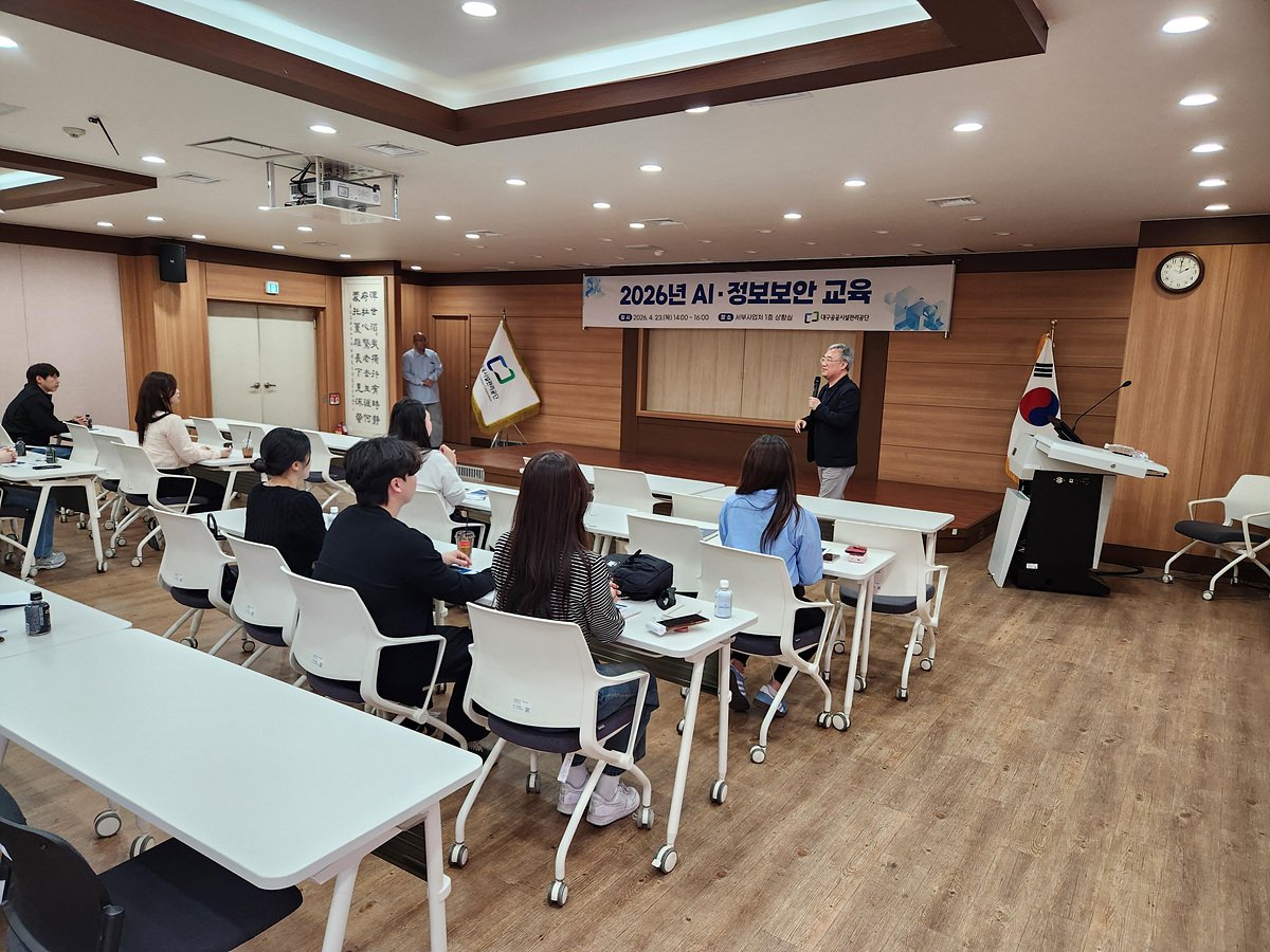 [PEDIEN] 대구공공시설관리공단은 4월 23일 공단 본사 대강당에서 AI를 활용한 공공기관 업무가 많아짐으로 인한 정보보안 위협에 대한 인식 제고를 위해 공단 내부 직원을 대상으로 ‘2026년 AI·정보보안 교육’을 실시했다.