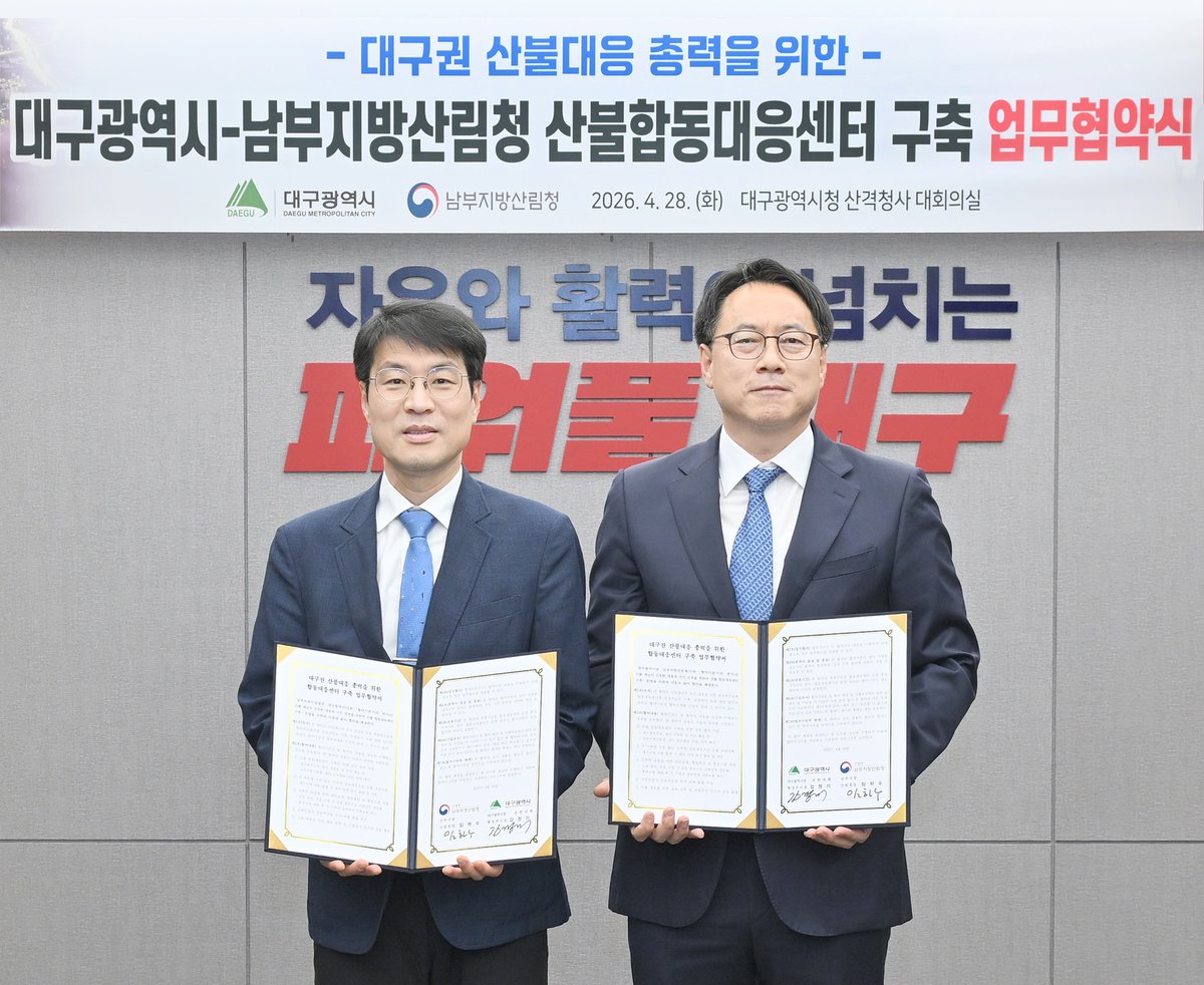 [PEDIEN] 대구시가 남부지방산림청과 손잡고 산불 초기대응 역량을 획기적으로 강화한다. 양 기관은 함지산 대형 산불 발생 1년을 맞은 4월 28일, 시청 산격청사에서 산불합동대응센터 구축을 위한 업무협약을 체결했다. 이로써 산불 발생 시 골든타임을 확보하고 진화 효율성을 높이는 데 주력할 방침이다.