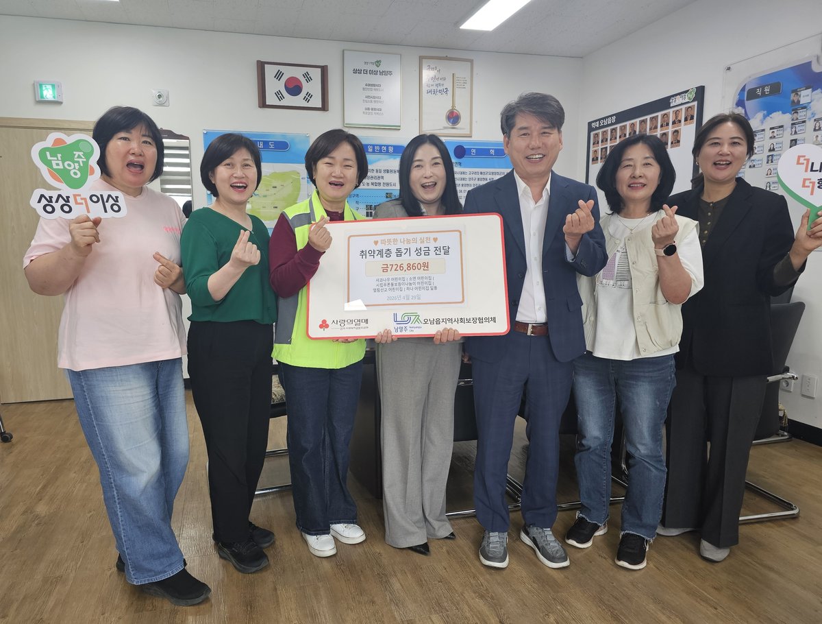 [PEDIEN] 남양주시 오남읍 관내 어린이집 5곳이 지난 17일 ‘The 오남 에듀 UP’ 플리마켓을 열어 약 73만 원의 수익금을 모아 오남읍 지역사회보장협의체에 전달했다. 아이들이 직접 참여해 마련한 이 기부금은 지역의 어려운 이웃을 위해 사용될 예정이다.