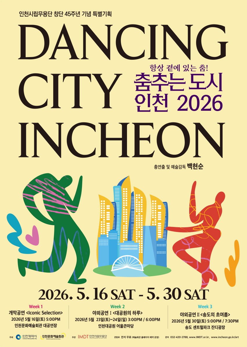 [PEDIEN] 인천의 봄이 춤으로 물든다. 인천시립무용단은 오는 5월 16일부터 30일까지 3주간 대표 축제 '춤추는 도시 인천 2026'을 개최한다고 25일 밝혔다.
